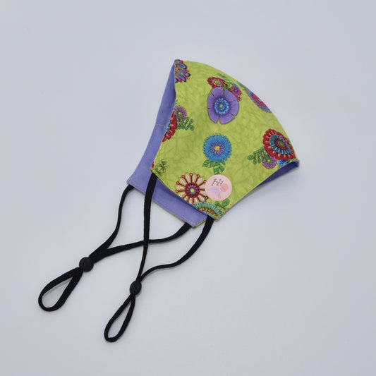 Lime Green and Multicolored Floral Print Reversible Face Mask